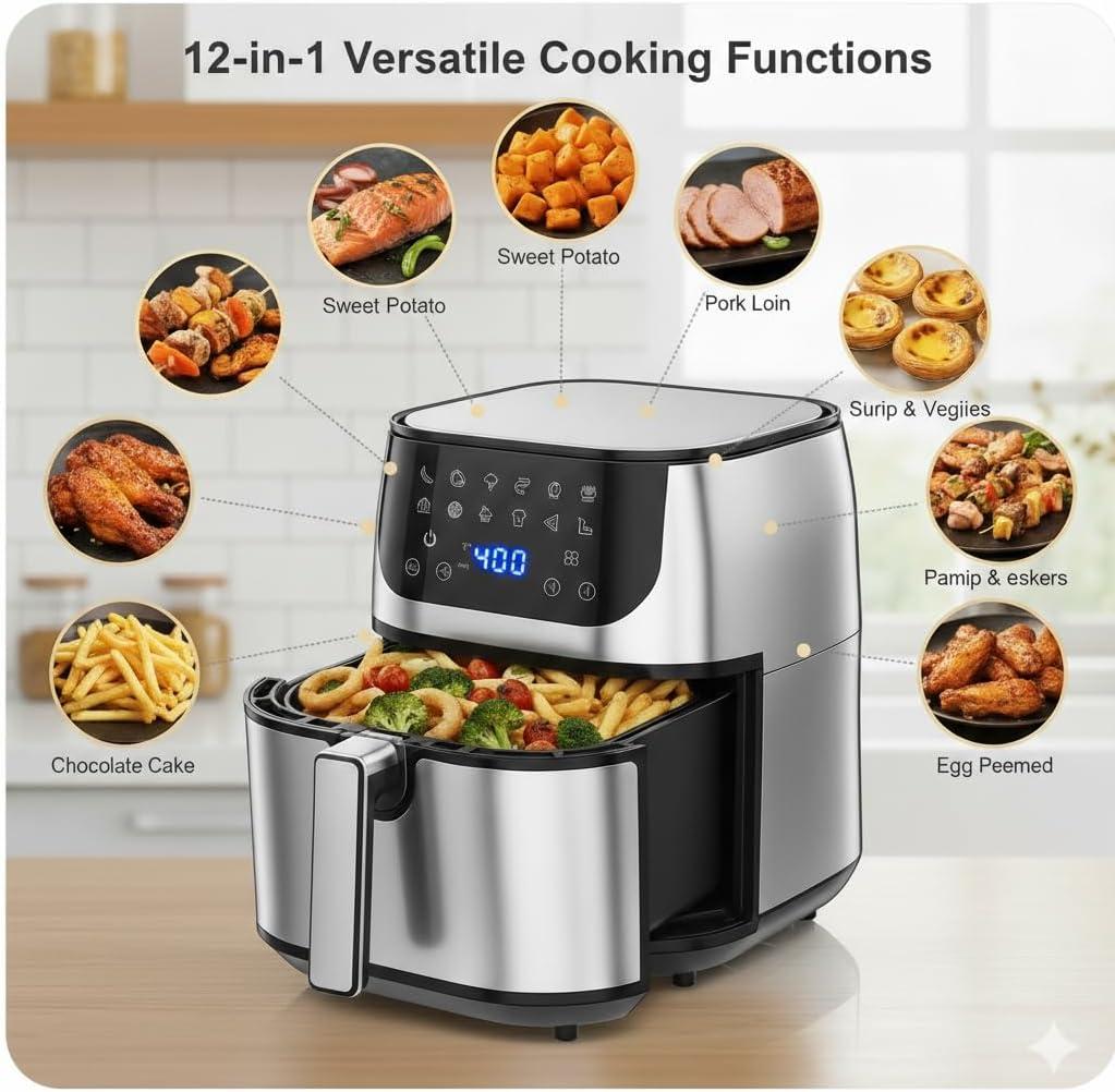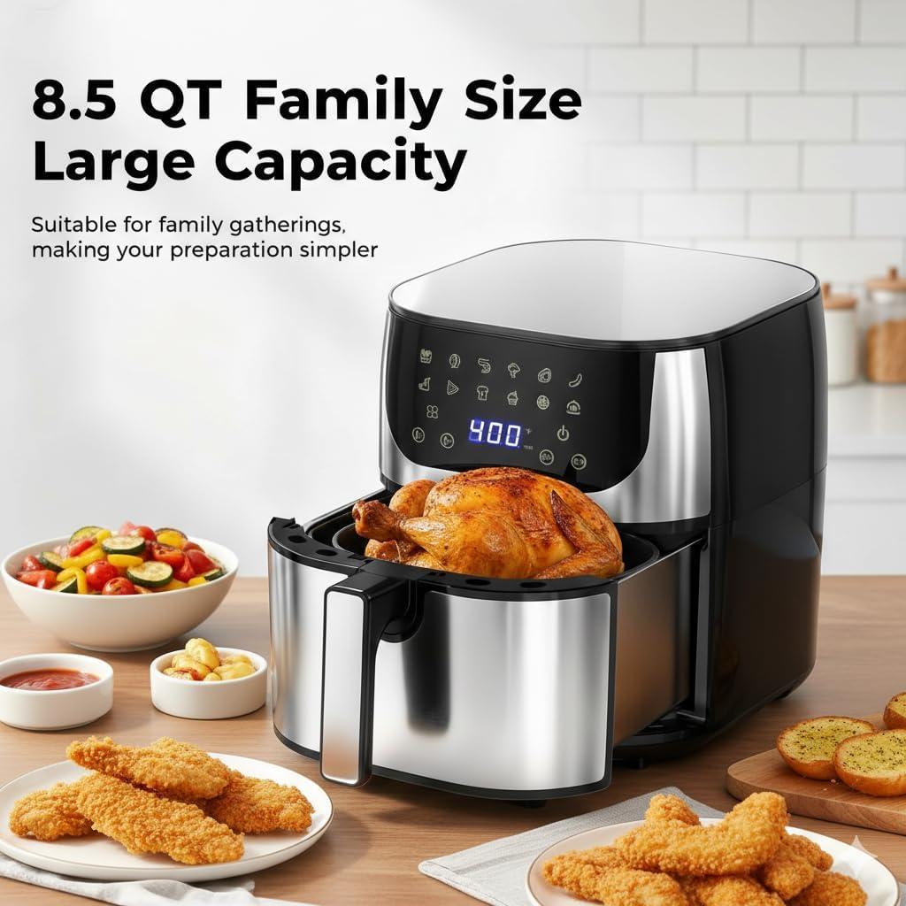 Large Family-Size Capacity: This Convection Oven features a spacious 12.6Qt basket, perfect for serving 4-6 people. Cook whole chickens, large batches of fries, and generous portions of veggies at once, making it ideal for family dinners, gatherings