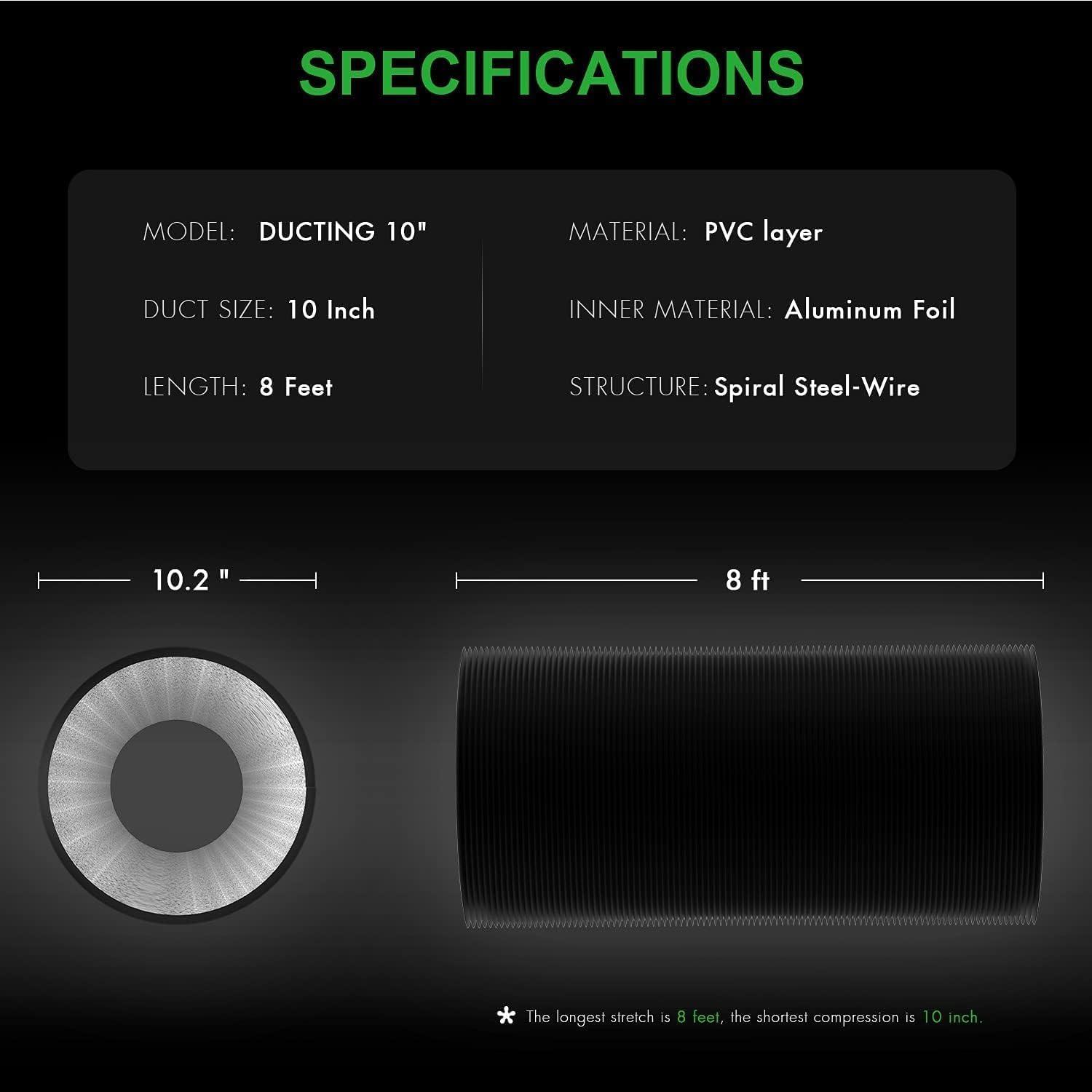 Flexible ducting: the aluminum foil duct tube can bend in any direction, allows you to accommodate most space restrictions. Flexible length for inline fan, quick and easy to set up