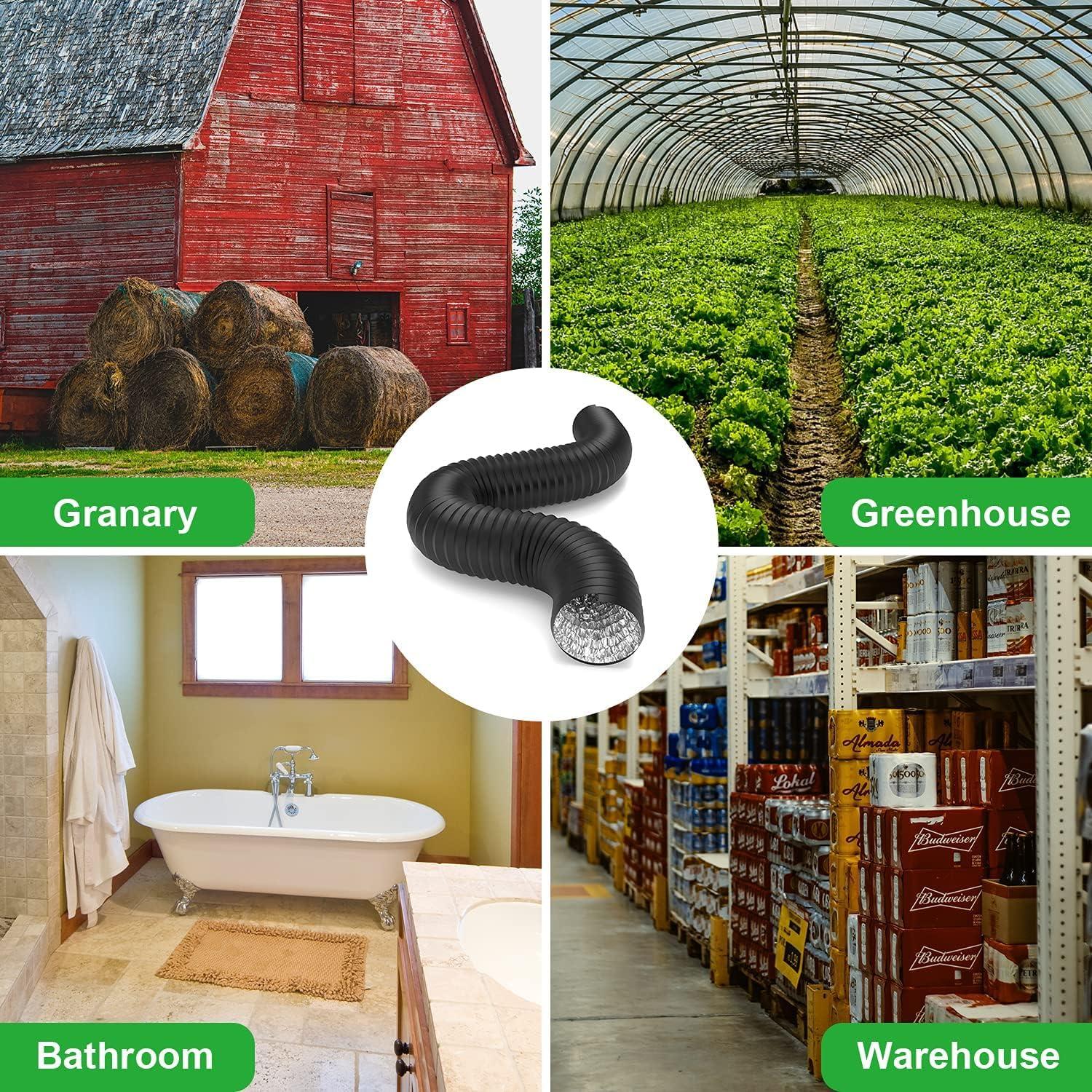 Flexible ducting: the aluminum foil duct tube can bend in any direction, allows you to accommodate most space restrictions. Flexible length for inline fan, quick and easy to set up