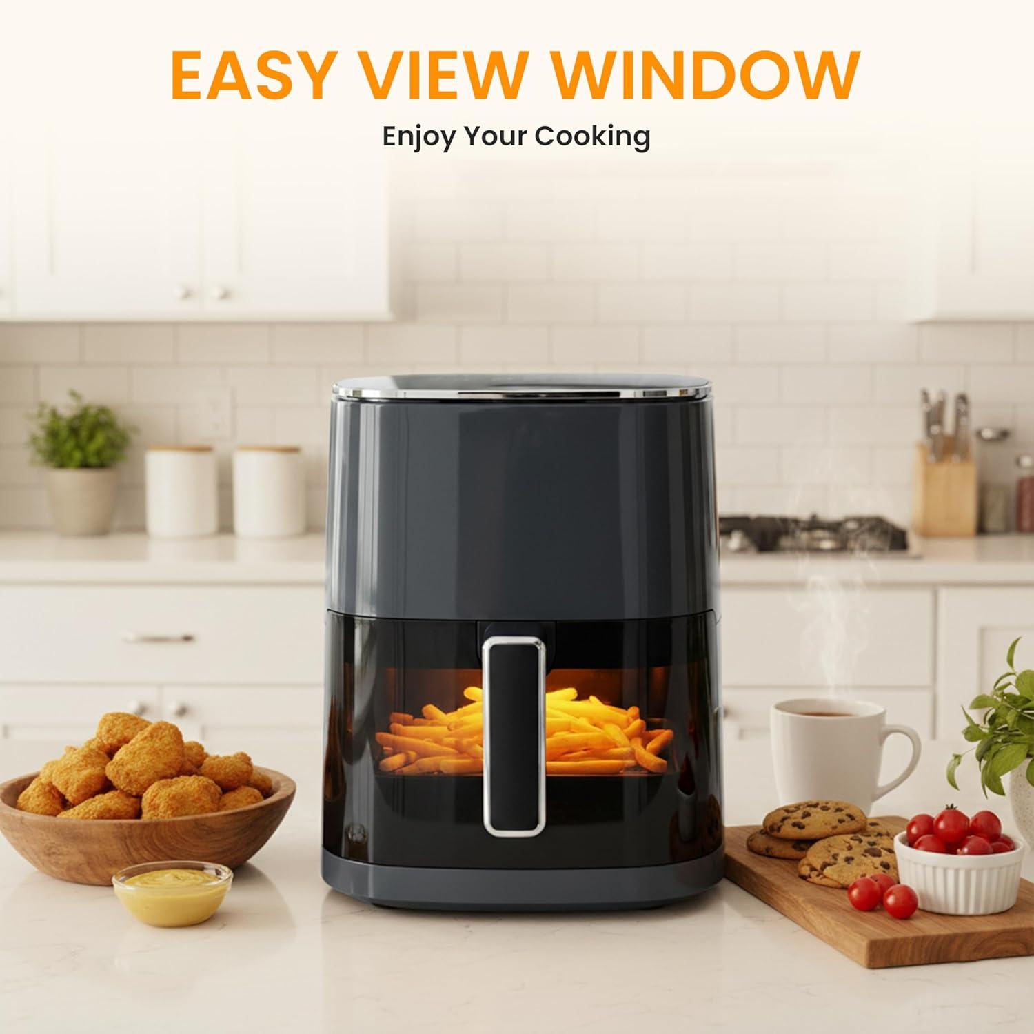 Visible Window: The crystal-clear window and built-in light of this Air Fryer Oven let you monitor browning and crispiness in real-time without opening the basket. Preserve heat and moisture for perfectly cooked meals every single time