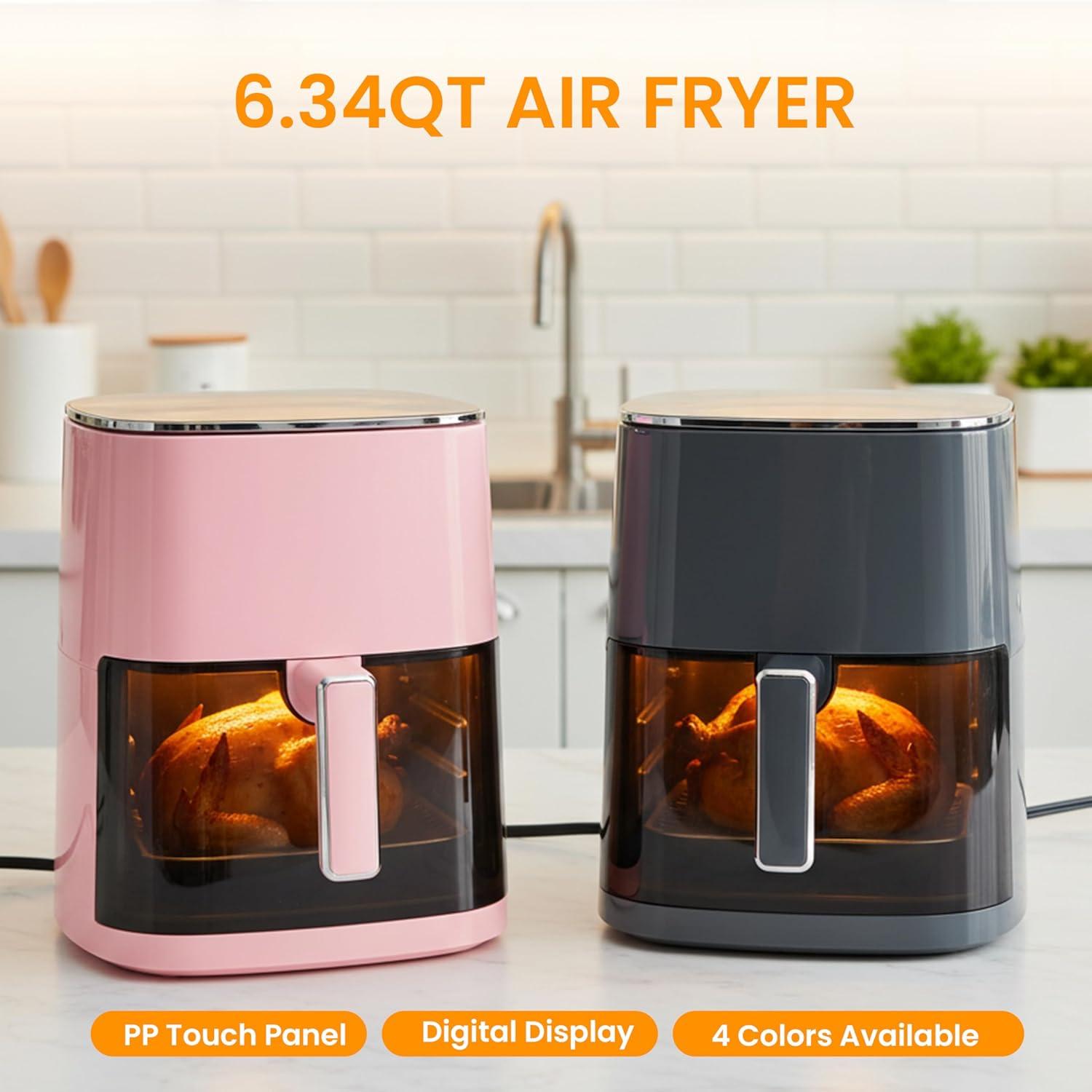 HealSmart 12-in-1 Air Fryer Oven, 6.34 Qt Digital Convection Oven with Visible Window & 1700W, Air Fry, Roast, Bake, Nonstick Basket, Black(Black-6.34QT)