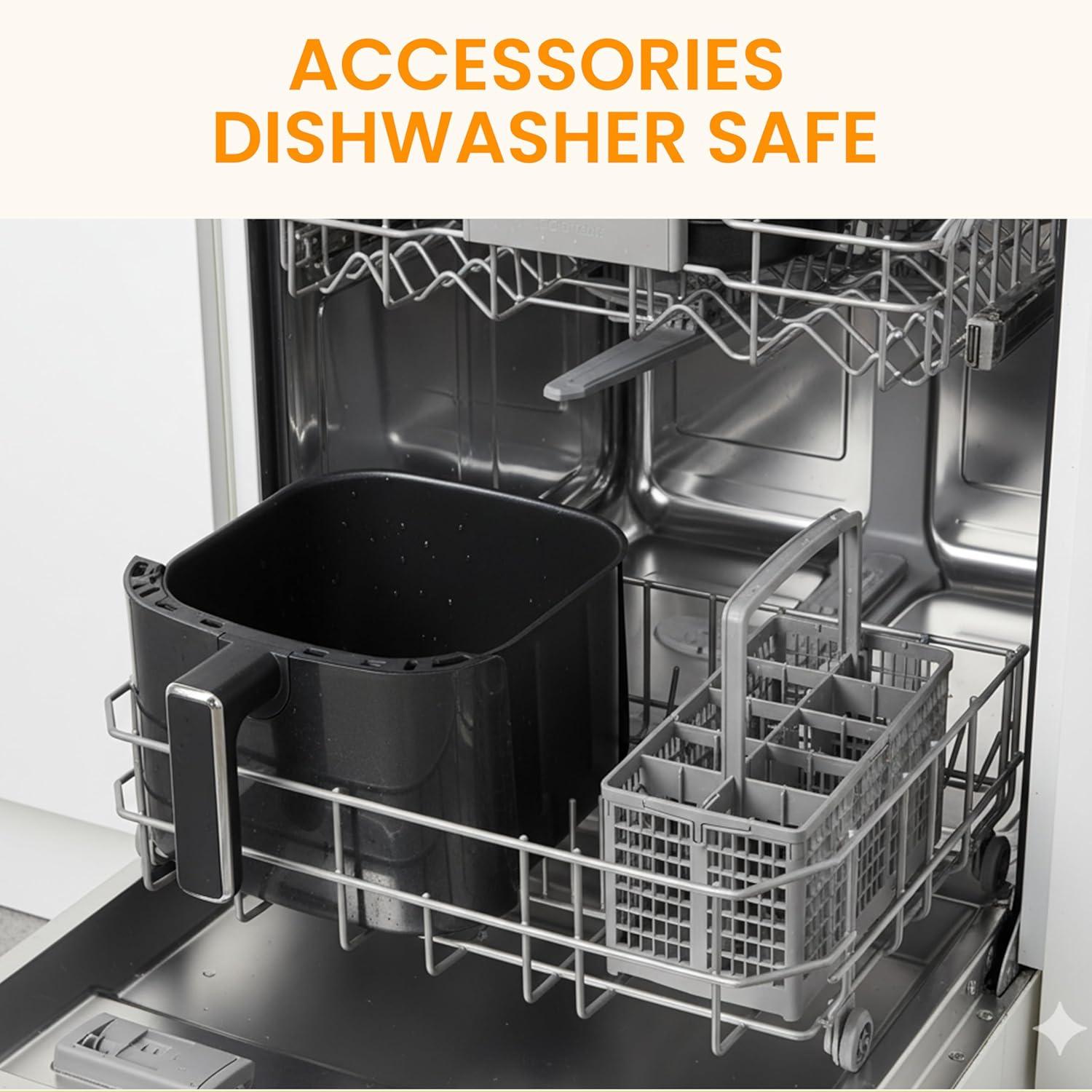 Effortless Cleanup : Enjoy more mealtime, less cleanup. The nonstick basket and all accessories are top-rack dishwasher safe. A quick wipe keeps the exterior stylishly clean, making this the most convenient and low-maintenance for your daily cooking