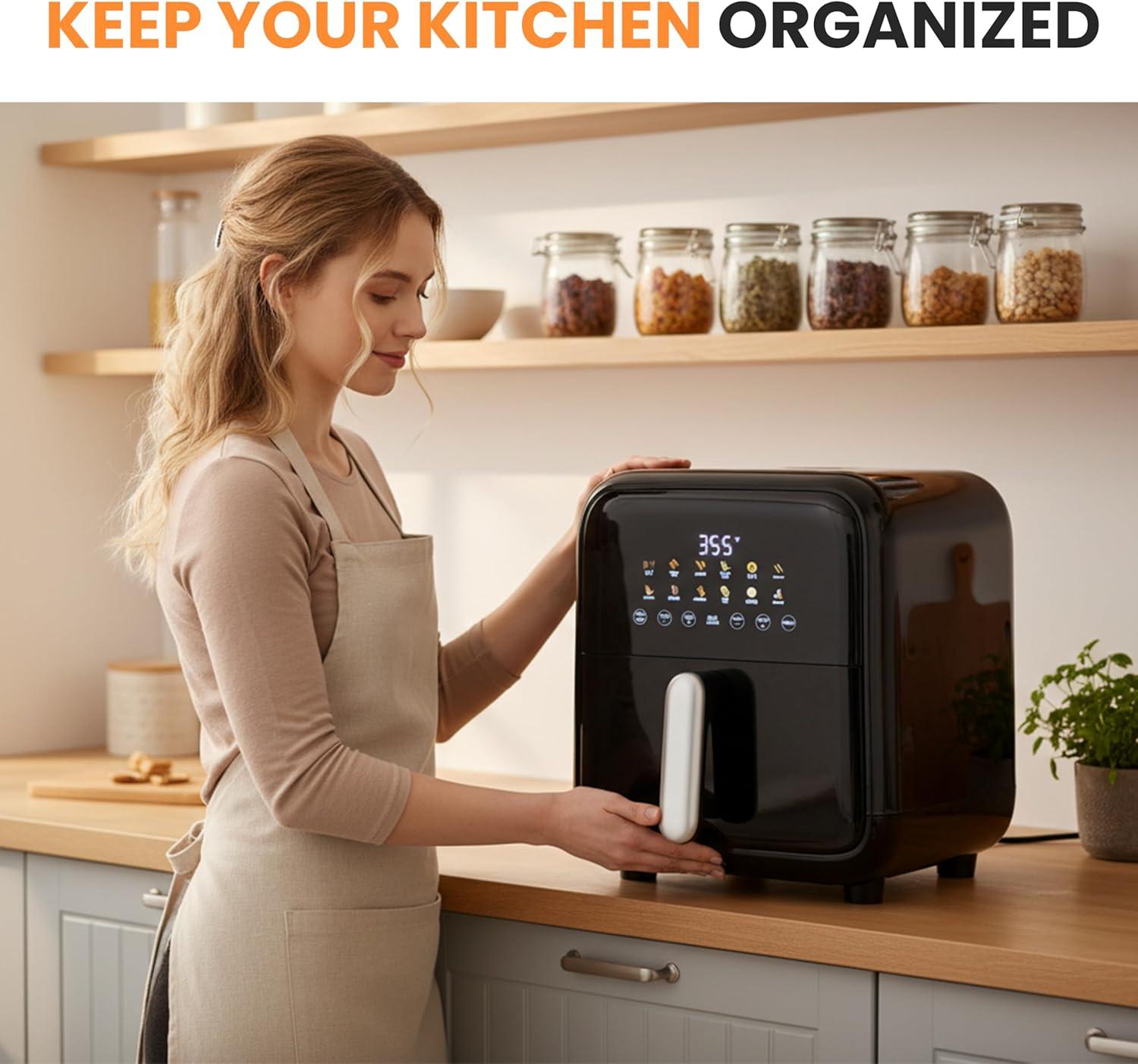 12-Family-Size Design: The generous 6.34-quart basket in this Convection Oven is ideal for family meals, Cook complete dinners for 3-4 people or multiple batches of appetizers, while its compact footprint saves precious counter space