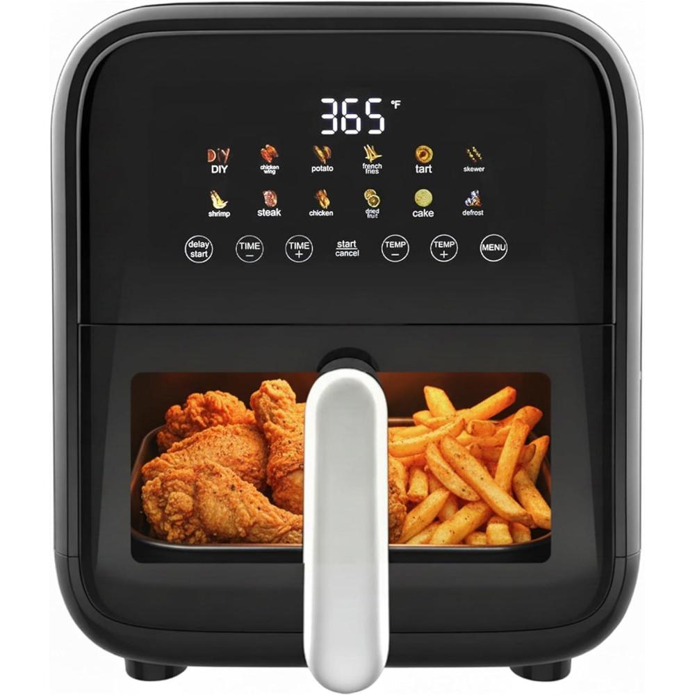 HealSmart 12-in-1 Air Fryer Oven, 6.34 Qt Digital Convection Oven with Visible Window & 1700W, Air Fry, Roast, Bake, Nonstick Basket, Black(Black-6.34QT)