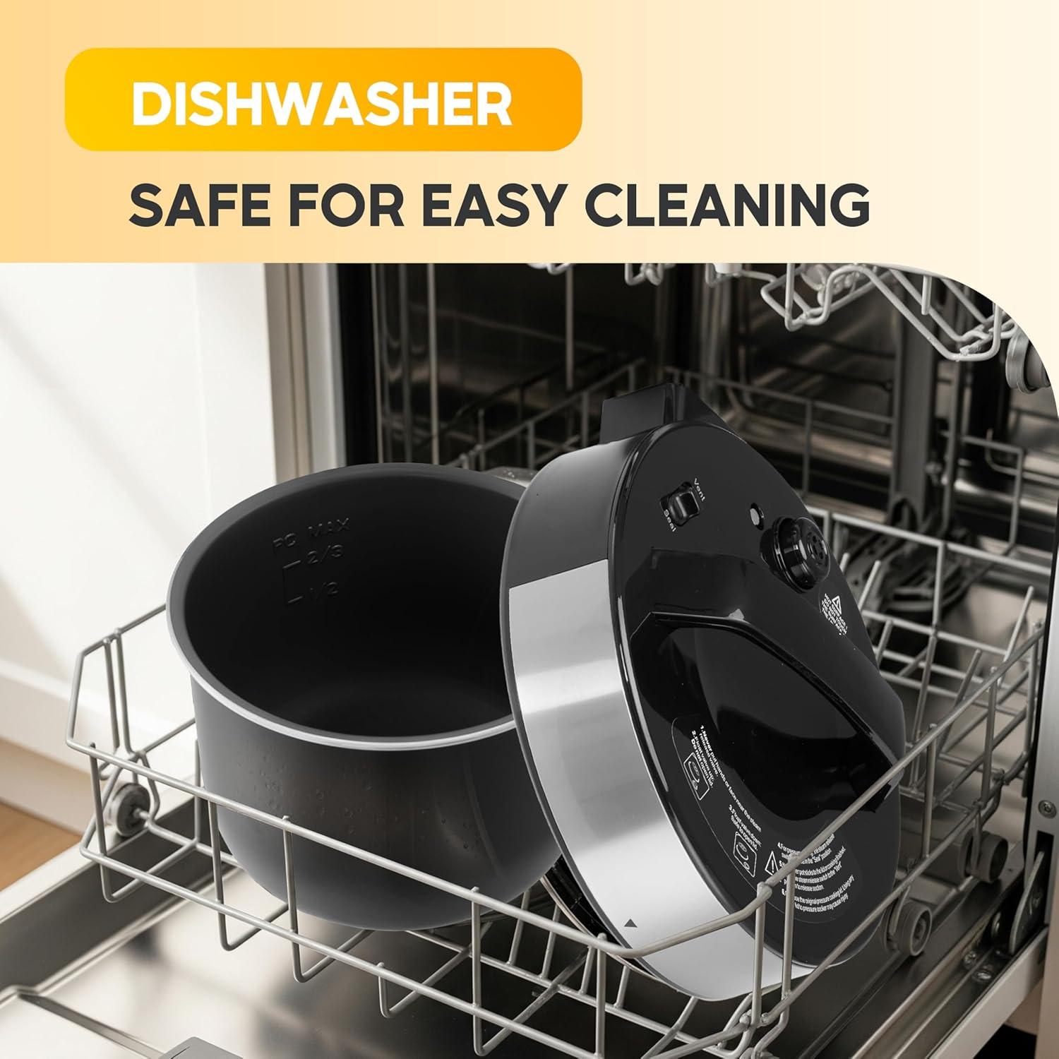 Dishwasher-Safe Cleaning: Say goodbye to stubborn, stuck-on food and tedious scrubbing. The advanced non-stick inner pot ensures easy food release, and both the pot and lid are dishwasher-safe