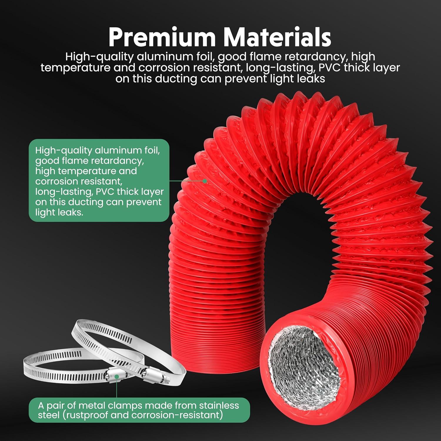HealSmart 12 Inch 25 FT Flexible Aluminum Duct, Equipped with 2 Clamps and 3 Layers of Protective Drying Tube for Heating Cooling Ventilation and Exhaust Fan, Silver(Red)