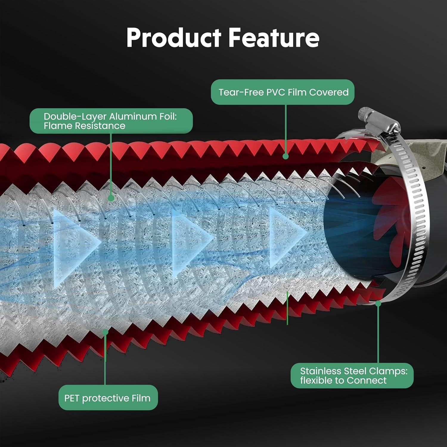 Flexible and Convenient: The aluminum foil duct can be adjusted in length and bent freely. Equipped with clamps, it allows for stable and easy installation and connection