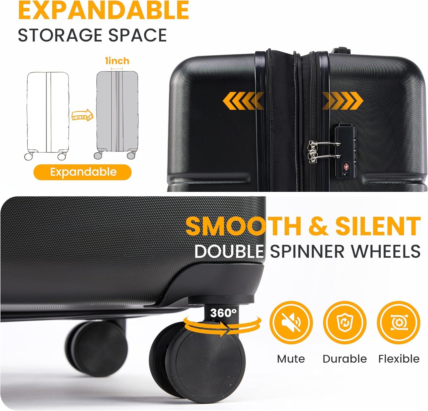 HealSmart 28″ Expandable Hard Shell Carry On Luggage with Spinner Wheels & TSA Lock, ABS Lightweight Rolling Suitcase, Black(Black-D)
