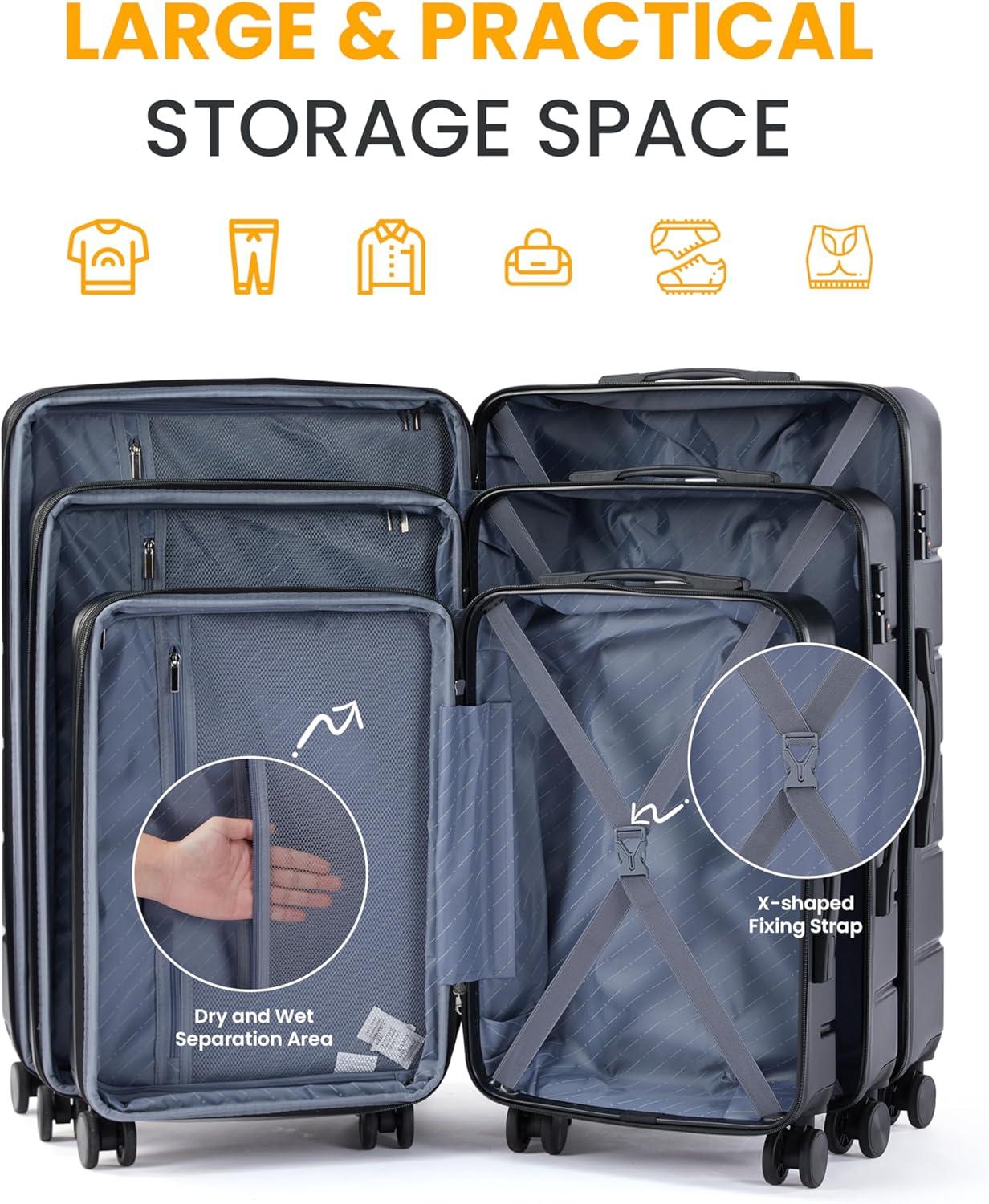 Large Internal Space: The spacious and practical suitcase features wet and dry mesh areas and is equipped with X securing straps for easy storage. The versatility and expandable storage capacity offers organization, designed to meet your travel needs.