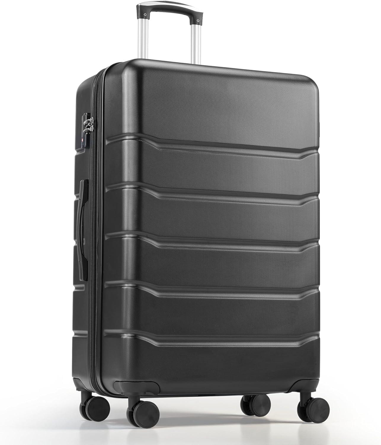 HealSmart 28" Expandable Hard Shell Carry On Luggage with Spinner Wheels & TSA Lock, ABS Lightweight Rolling Suitcase, Black(Black-D)