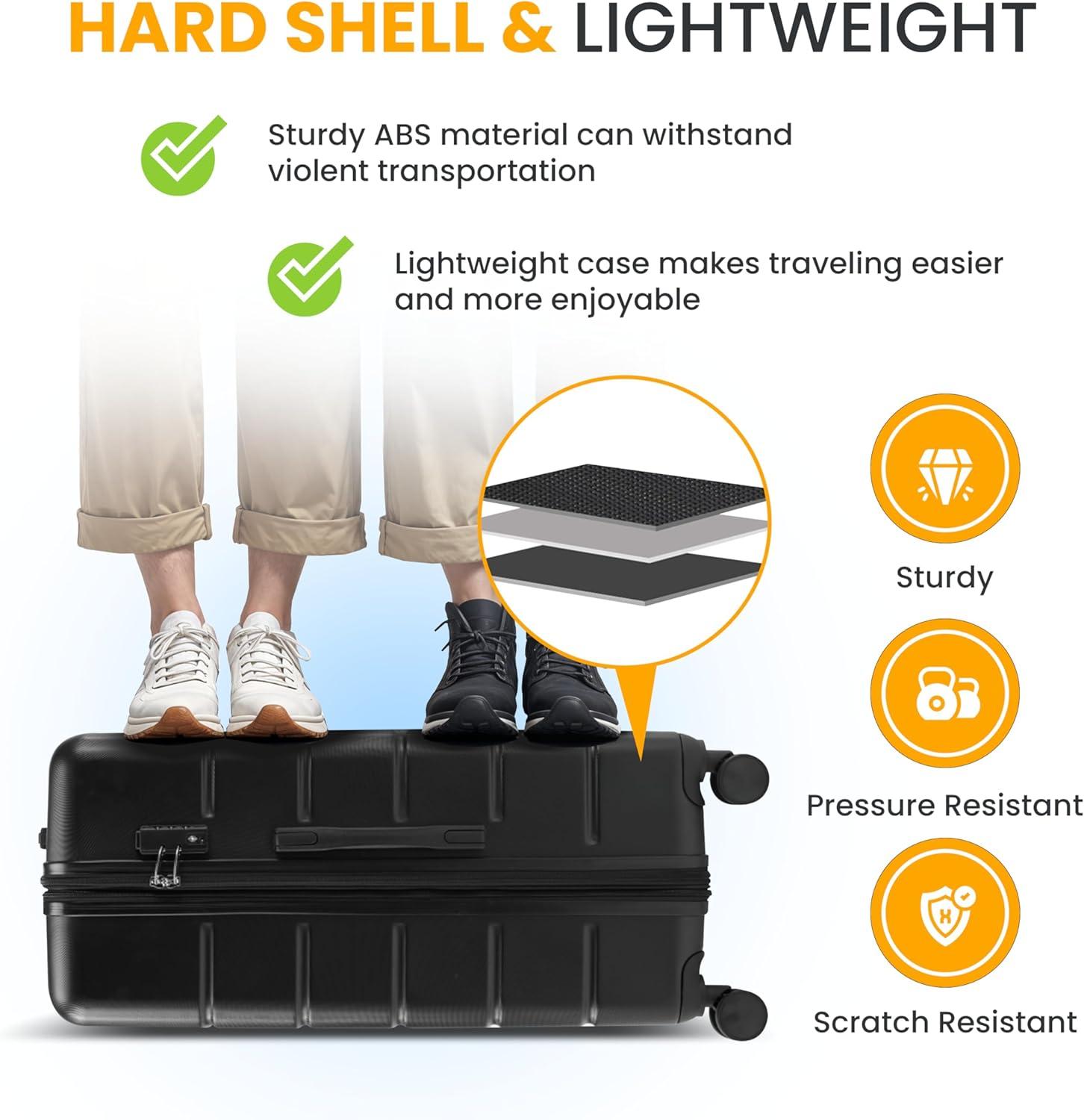 Durable & Lightweight Hard Shell: Crafted with high-quality scratch-resistant ABS material, this suitcase combines strength and easy handling. Rigorously tested for impact resistance, it passes drop and load-bearing tests—ideal for frequent travelers seeking reliable, expandable luggage.