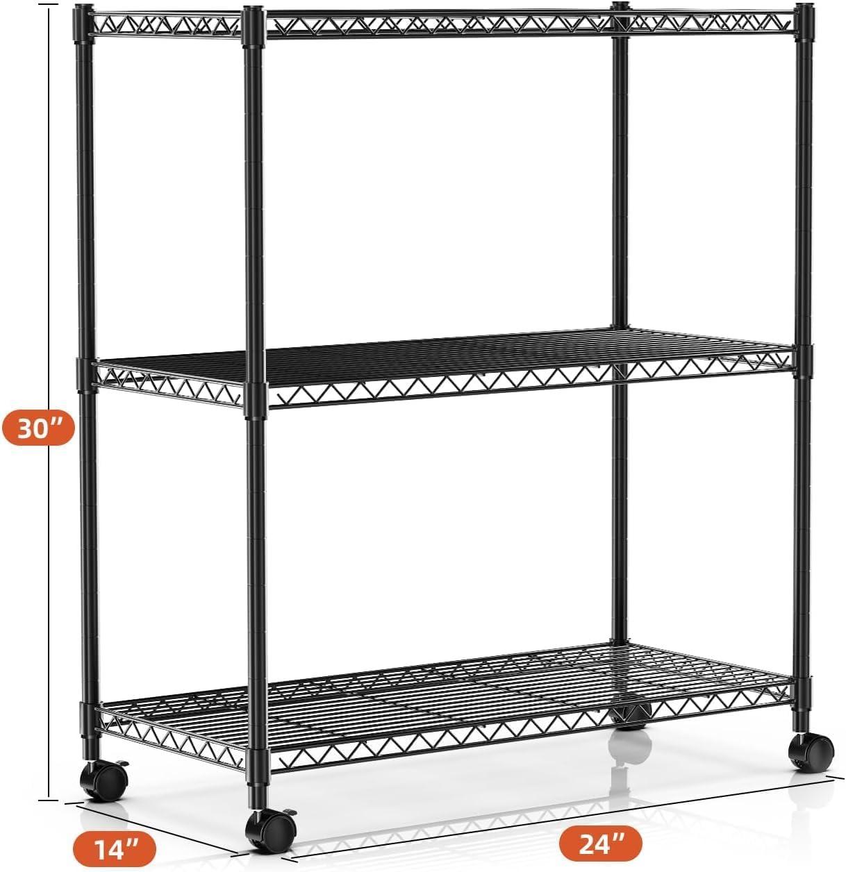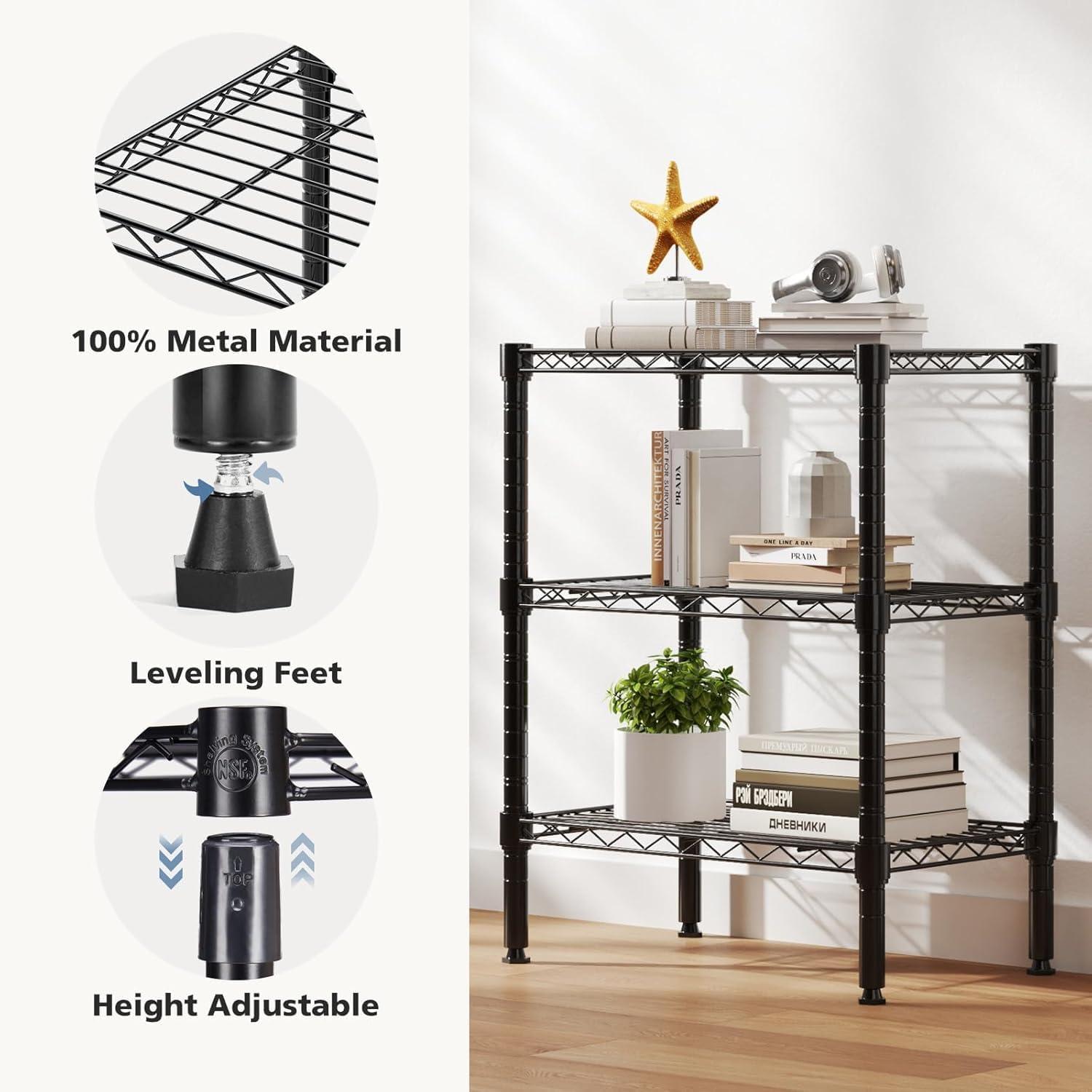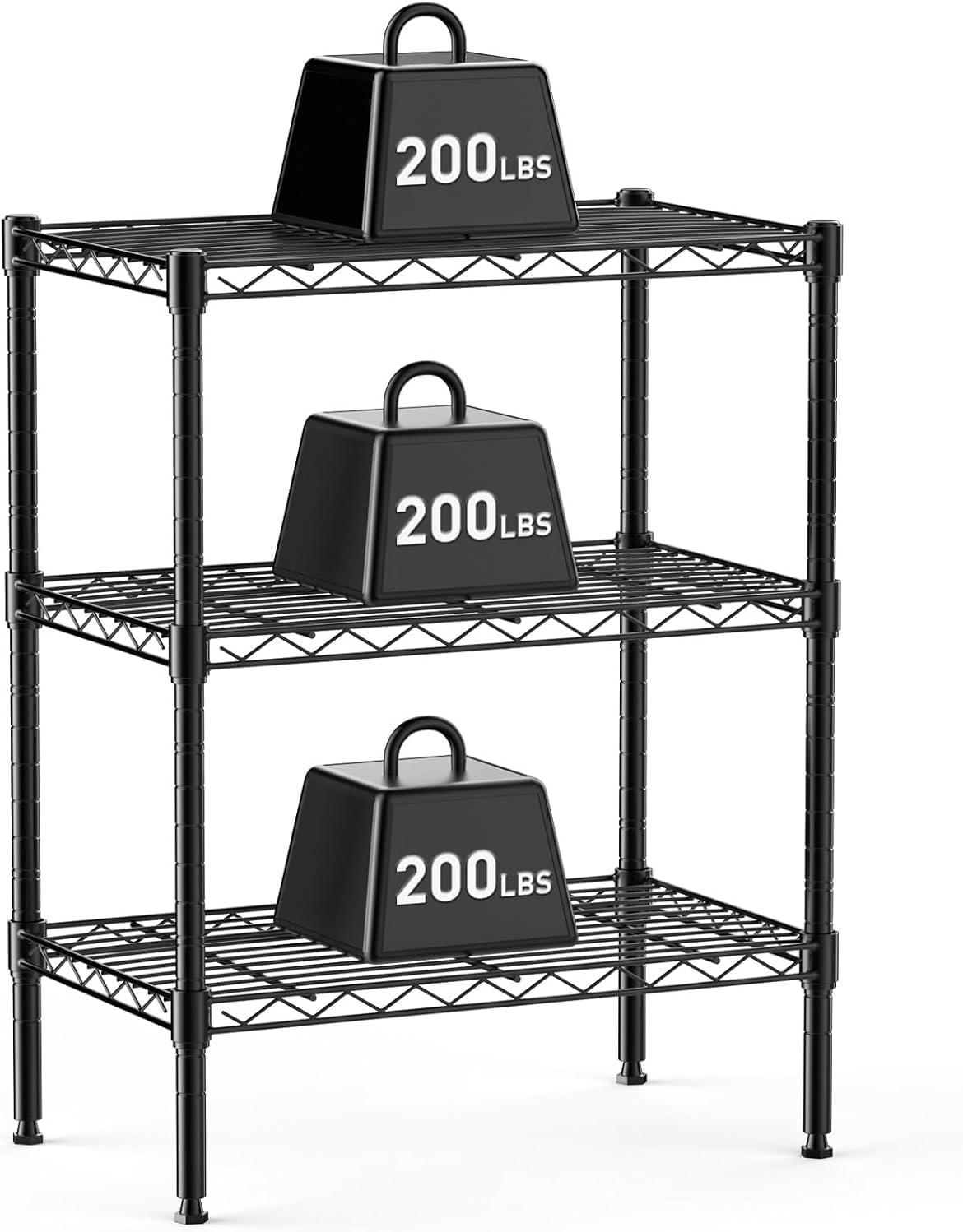 HealSmart 3-Tier Heavy Duty Storage Shelves 750Lb Capacity, 24.02" D x 13.78" W x 31.98" H Shelving Unit for Pantry, Garage, Laundry and Kitchen, Black(Black)