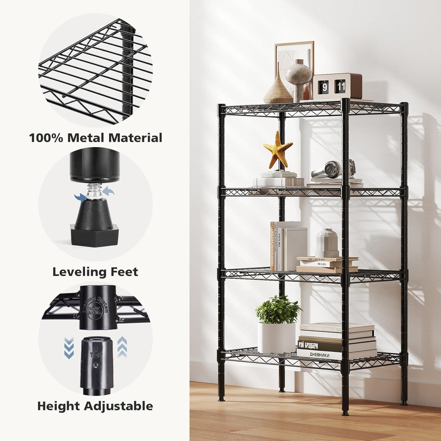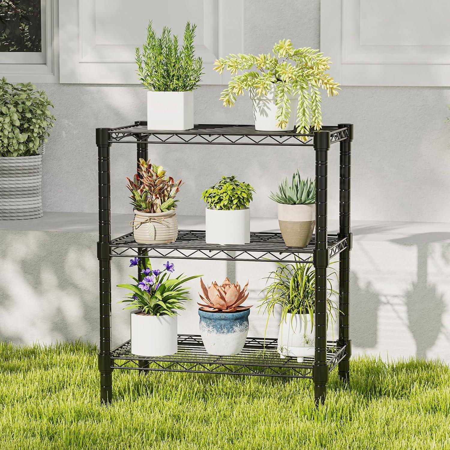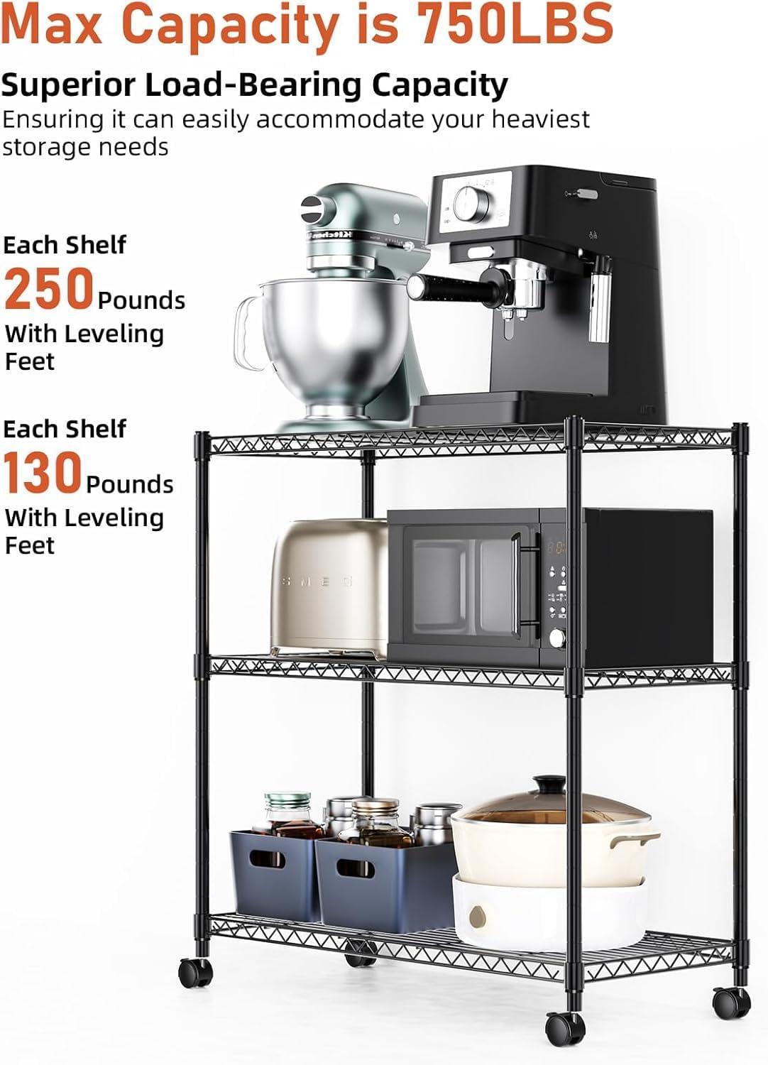 HealSmart 3-Tier Heavy Duty Storage Shelves 750Lb Capacity, 24.02" D x 13.78" W x 31.98" H Shelving Unit for Pantry, Garage, Laundry and Kitchen, Black(Black)