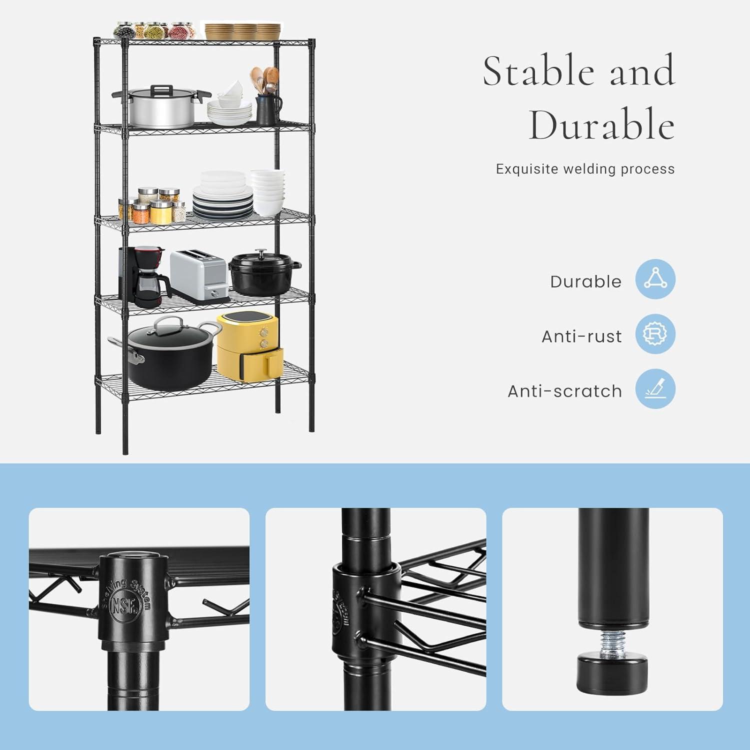 HealSmart 3-Tier Heavy Duty Storage Shelves 750Lb Capacity, 24.02″ D x 13.78″ W x 31.98″ H Shelving Unit for Pantry, Garage, Laundry and Kitchen, Black(Black)