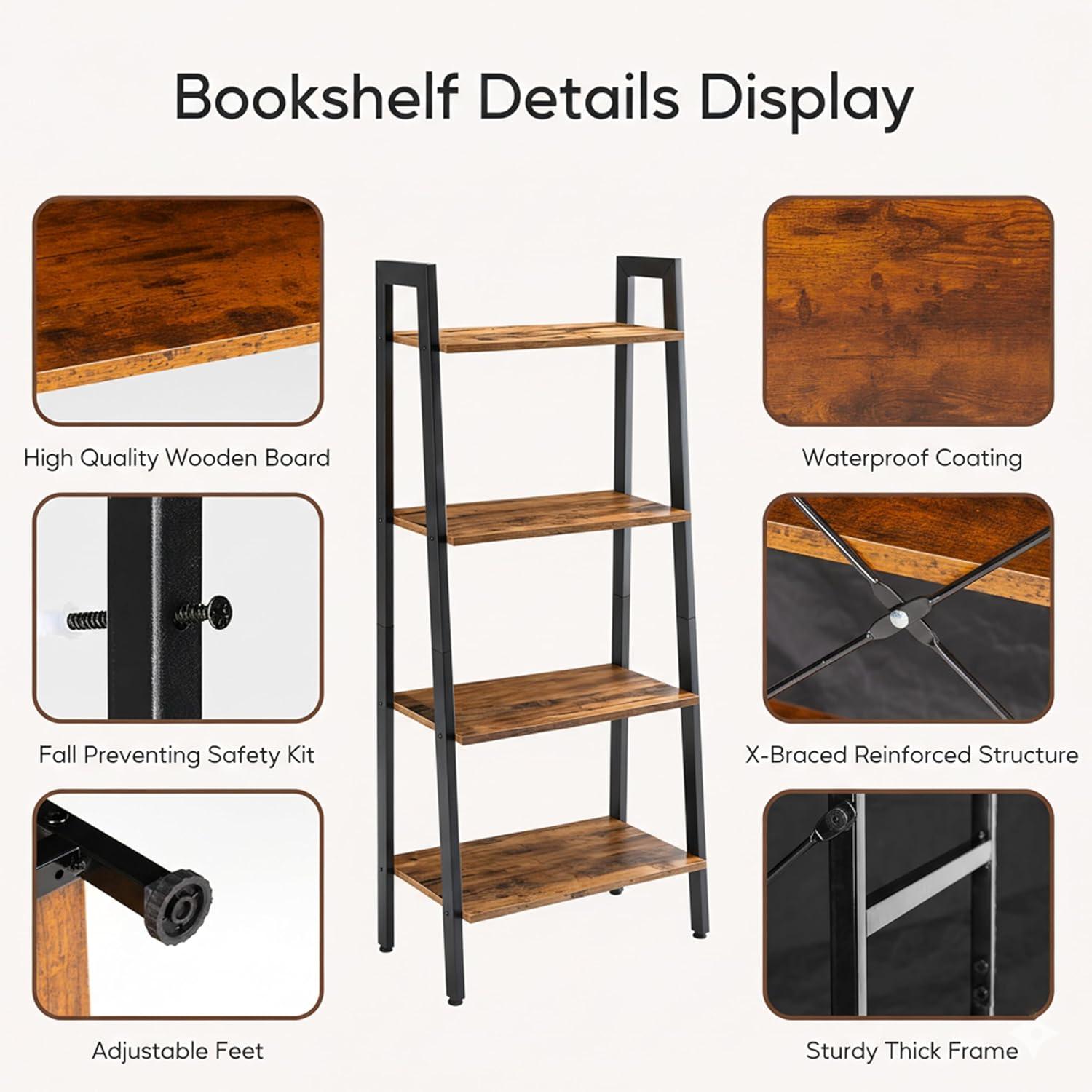 imageHealSmart 4 Tier Bookshelf Ladder Shelf Free Standing Book Shelf Home Office Bookcase Shelf Storage Organizer for Bedroom Living Room Bathroom Office Balcony BrownClassic Black