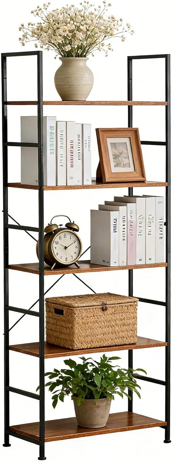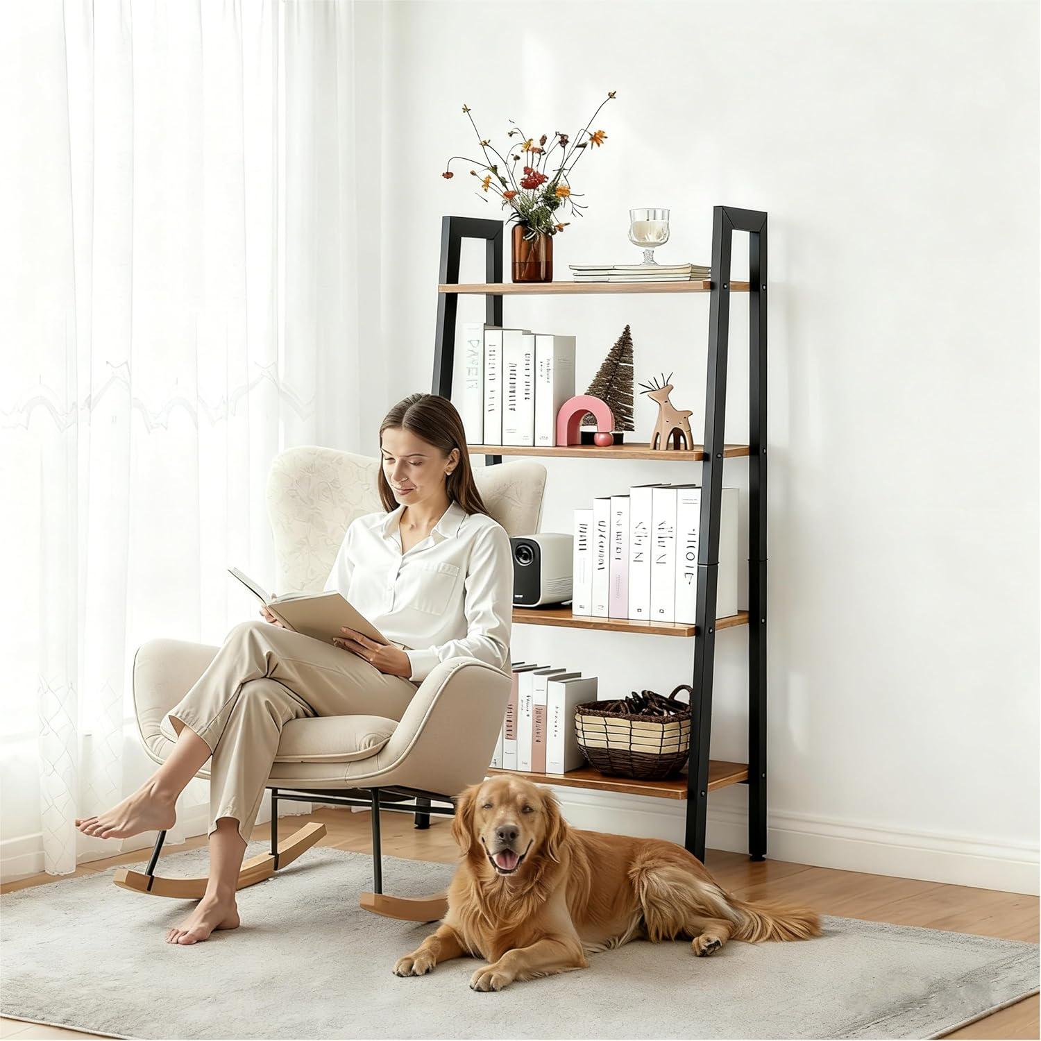 HealSmart 4 Tier Bookshelf, Ladder Shelf Free Standing Book Shelf Home Office Bookcase Shelf Storage Organizer for Bedroom, Living Room, Bathroom, Office, Balcony, Brown(Brown)