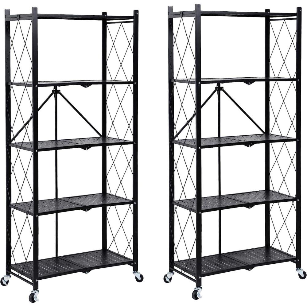imageHealSmart Heavy Duty 4Tier Foldable Metal Rack 1496quot D x 2795quot W x 4961quot H Storage Shelving Unit 1000 lbs with Wheels Moving Easily Organizer Shelves Great for Garage Kitchen Black5Shelf