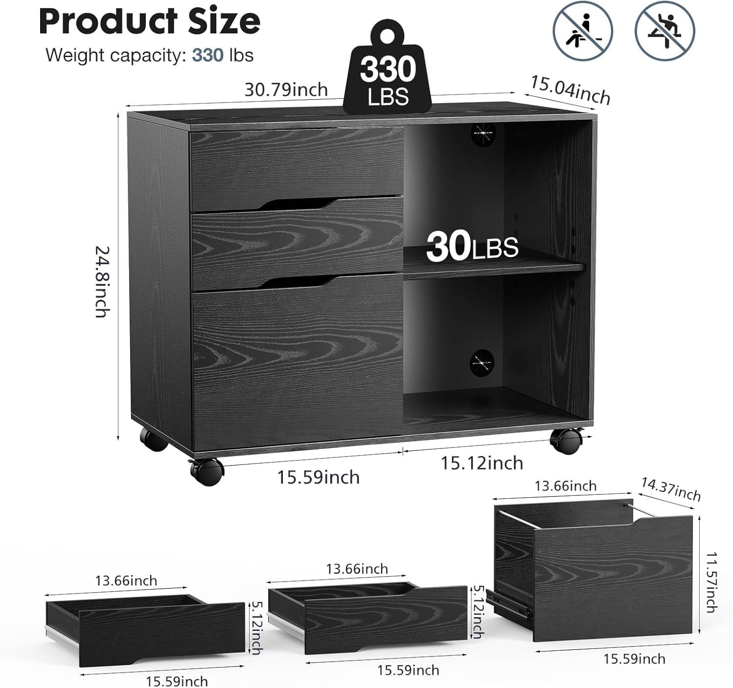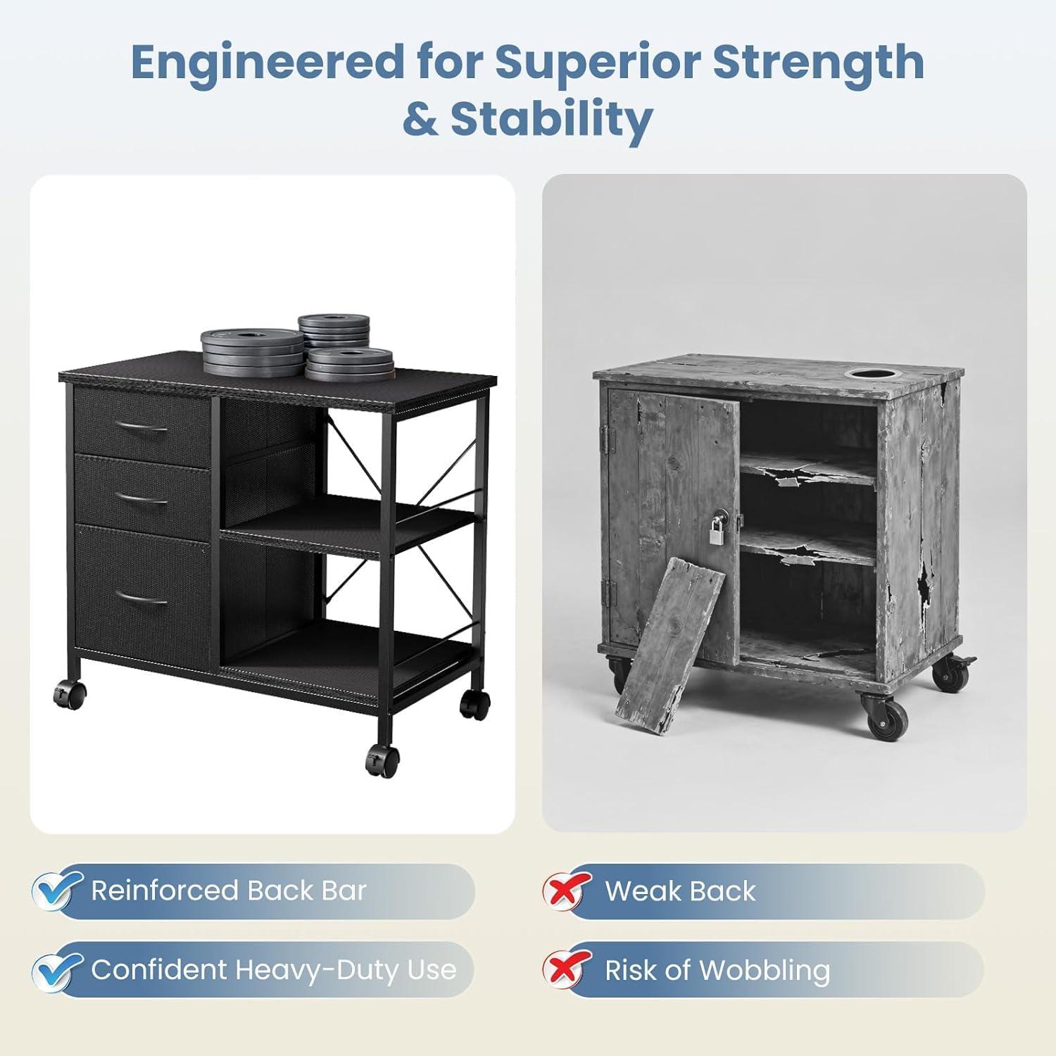 Heavy-Duty & Stable Printer Stand :Featuring a reinforced steel back support bar, this mobile cabinet functions as a robust printer stand with storage. The solid wood top supports up to 110 lbs for printers or monitors, ensuring reliable stability for your heavy equipment.