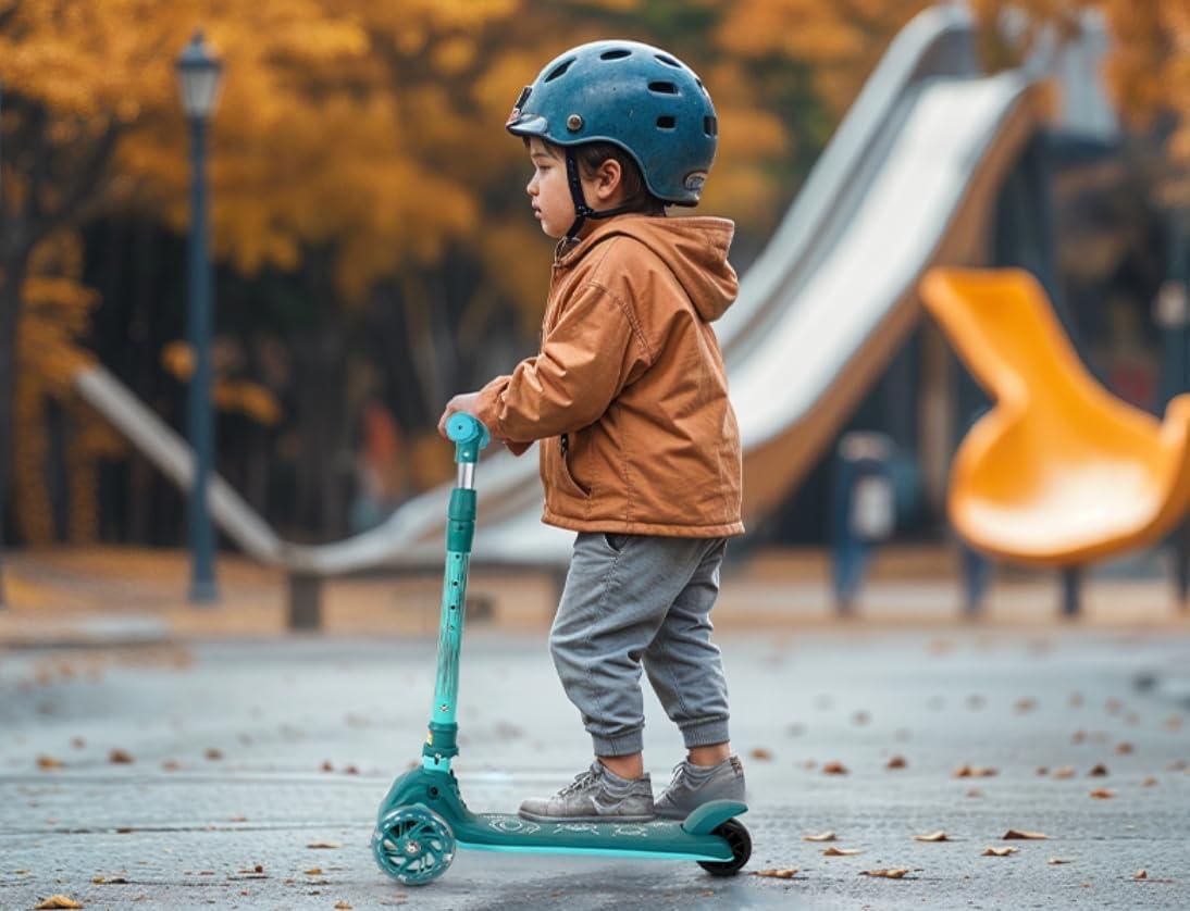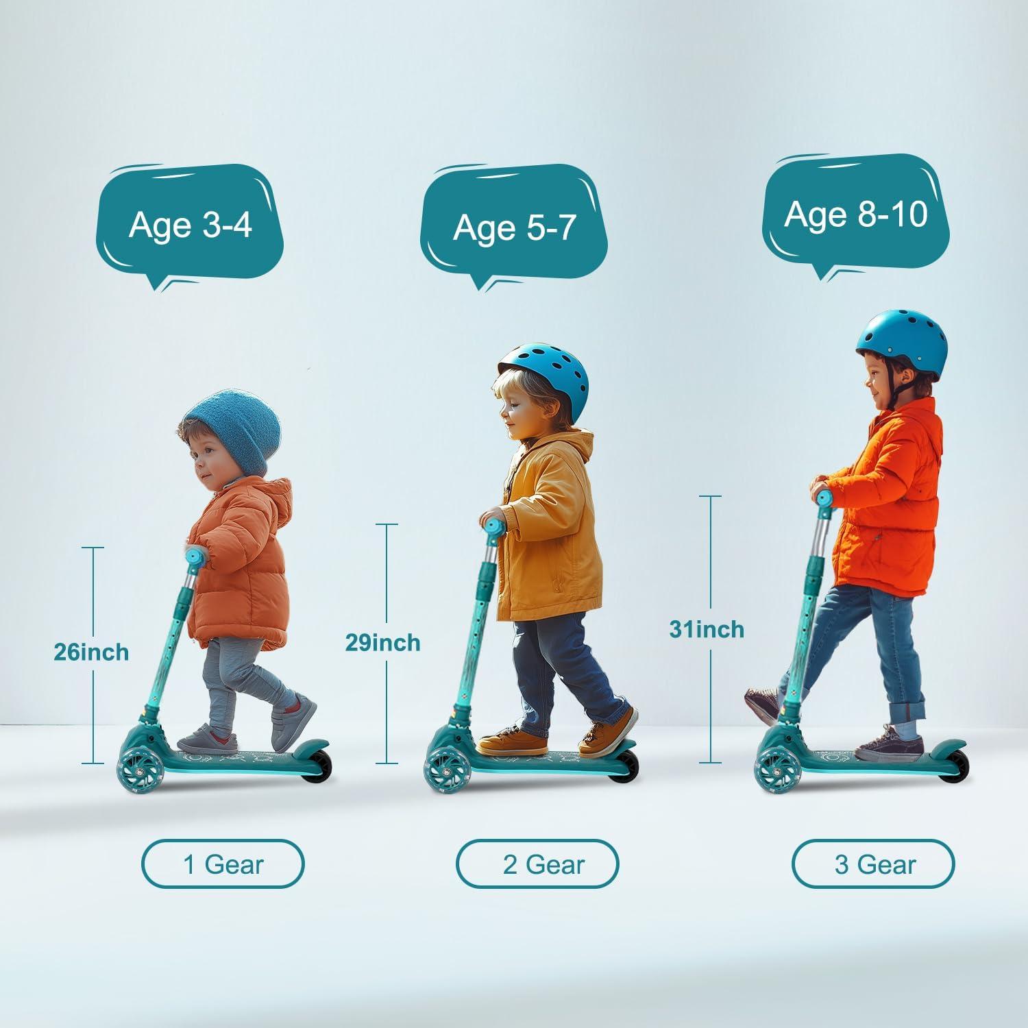 90°& 4:The scooter can be folded 90 degrees for easy storage and carrying. The scooter has 4 levels of height adjustment, suitable for children of different ages.