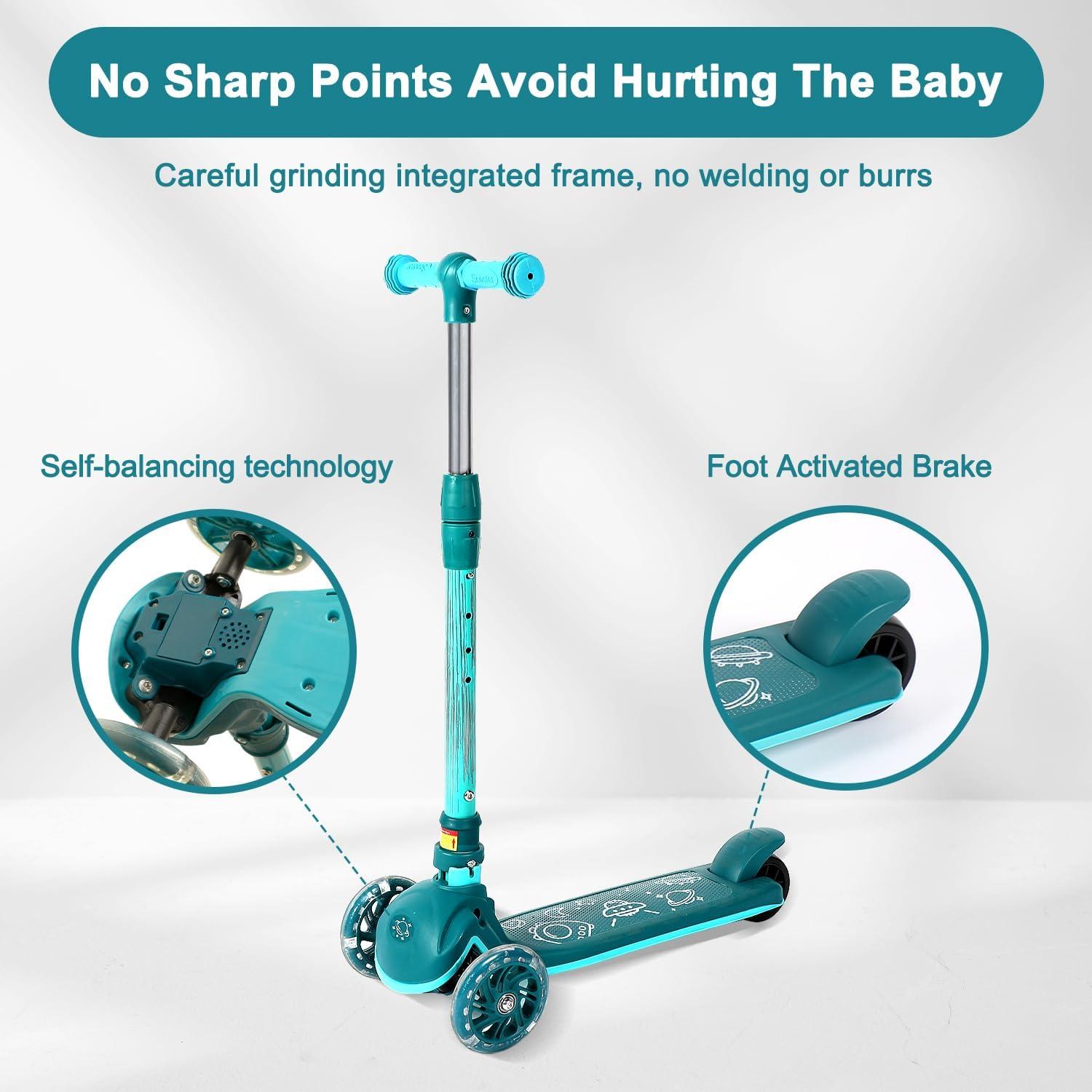 Rear Brake: The brake on the rear wheel makes safety a top priority. With a gentle press, the scooter can be stopped quickly.The scooter is equipped with an advanced balance system design, making the child's safety more reliable